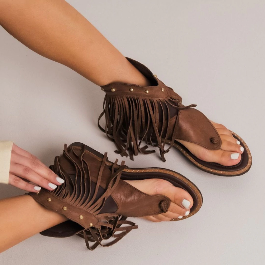 Tiene capellada con flecos largos que aportan movimiento y un look bien tendencia. Cuenta con cierre en el talón que facilita el calce. Las tachas metálicas le dan ese detalle diferencial que levanta cualquier outfit.